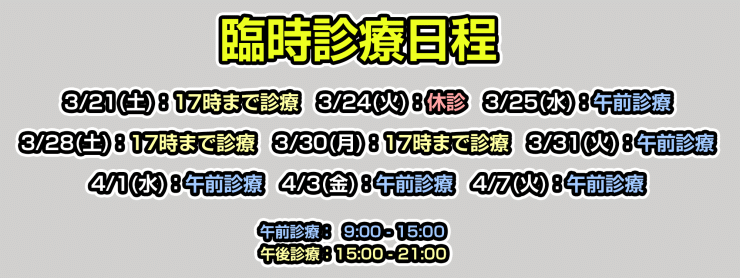 ・2025年11月前半は一身上の都合により、休診が多い日程となります。ご迷惑おかけしますがよろしくお願いいたします。